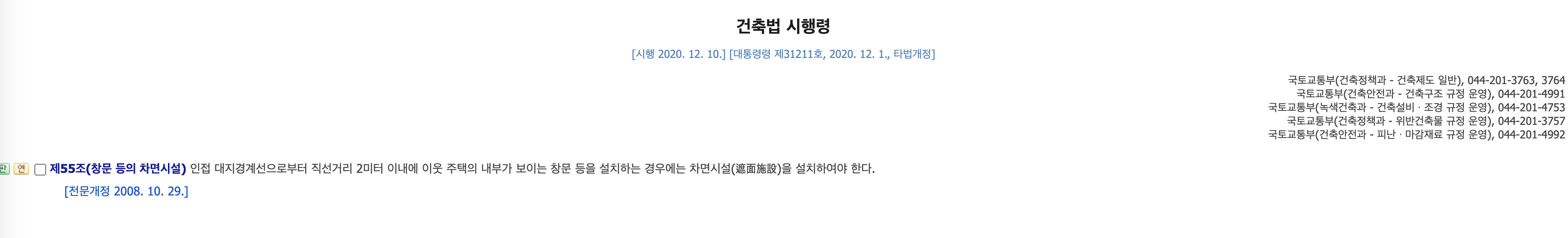 건축법 시행령 55조 (창문 등의 차면시설)